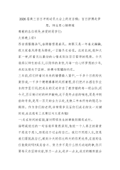 2026届高三百日冲刺动员大会上的发言稿:百日拼搏赴梦想,师生同心铸辉煌尊敬的各位领导,亲爱的同学们:大家晚上好!昂首扬鬃腾浩气,奋蹄踏雪展春风。转眼又是一年春光融融,祝大家春风得意马蹄疾,一日踏尽长安花。此时此刻,我和大家一样,怀着无比激动的心情来到这百日誓师的现场。今天我将以师长的名义,以陪伴的身份,与每一位心怀梦想的少年,共赴这场关于坚持、拼搏与荣耀的约定。三年前,你们怀着对未来的憧憬踏入望中,一千多个日夜的伏案苦读,一千多个朝朝暮暮的风雨兼程,你们把汗水洒在作业本的字里行间;把成长的足迹印在了教学楼的每一级台阶,而今天,百日倒计时的钟声敲响,这不是终点前的喘息,而是冲刺前的号角,是用一百天的全力以赴,兑换三年来所有的隐忍与期待。作为你们的老师,非常荣幸见证你们成长的这一关键时刻,在此...