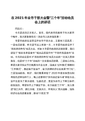 在2021年全市干部大会暨“三个年”活动动员会上的讲话同志们:今天是农历正月初八。首先,我代表市四套班子向大家拜个晚年,祝大家新春快乐!祝全市人民幸福安康!市委市政府在这里召开全市干部大会,主要有三层意思:一是动员部署。昨天是节后上班第一天,X市委市政府召开了“四攻坚四争先”动员大会。对标X市委市政府的决策部署,我们谋划了“项目攻坚提速年”“城乡品质提升年”“干部作风提效年”活动。今天的会议是对X“四攻坚四争先”动员大会的一次深入贯彻落实,也是对“三个年”活动的一次全面动员部署。二是收心归位。希望大家尽快从节日氛围当中走出来,迅速从“过年模式”调整到“工作模式”,撸起袖子加油干,奋力拼搏经济社...