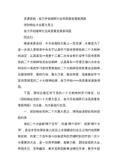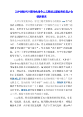 XJP新时代中国特色社会主义思想主题教育动员大会讲话要求天津大学党委书记、学校主题教育领导小组组长xxx在作动员讲话时指出,学习贯彻XJP新时代中国特色社会主义思想主题教育,是党中央为全面贯彻党的二十大精神、动员全党同志为完成党的中心任务而团结奋斗所作的重大部署,是深入推进新时代党的建设新的伟大工程的重大部署,事关全局、意义重大。认真落实党中央决策部署、扎实开展好我校主题教育,是学校当前和今后一个时期的重大政治任务,更是对各级党组织和广大党员干部师生坚定拥护“两个确立”、坚决做到“两个维护”的政治检验。全校上下要坚决贯彻落实党中央决策部署,在中央指导组的指导帮助下,扎实有力推进主题教育各项工作...