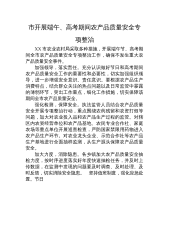 市开展端午、高考期间农产品质量安全专项整治XX市农业农村局采取多种措施,开展端午节、高考期间全市农产品质量安全专项整治工作,确保不发生重大农产品质量安全事件。加强领导,落实责任。充分认识做好节日和高考期间农产品质量安全工作的重要性和必要性,切实加强组织领导,进一步增强安全意识、责任意识。要根据农产品生产消费特点,结合群众关注的热点问题以及日常监管中暴露的薄弱环节,突出工作重点,细化工作措施,切实保障该期间全市农产品质量安全。强化检测,保障安全。执法监管人员结合农产品质量安全开展专项整治行动,重点围绕农药残留和农资打假等问题,加大对农业投入品和农产品生产过程的监管。对辖区内农资经营单位和农产品基...