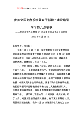 公文堂——海量公文资料,关注立即下载参加全国政府系统督查干部能力建设培训学习的几点收获——在市政府办公室第13次业务工作点评会上的发言(201x年6月15日)各位领导,同志们:今年5月6日到12日,我有幸参加了国办督查室在国家行政学院举办的督查干部能力建设培训班。全国136名同志参加培训,河南3名同志参加培训。培训之后,感触多多,收获满满。具体来说,有以下3点。一、学到了新知,增长了见识。之所以这么说,主要源于以下几点。一是老师讲课有水平。讲课老师均为实践经验丰富的领导同志和理论功底深厚的专家学者,特别是国办督查室主持日常工作的李国周副主任,中国工程院院士邬贺铨教授,中国人民大学金灿荣教授,国...