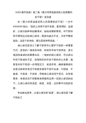 《XXX着作选读》第二卷《着力培养选拔党和人民需要的好干部》读后感在《着力培养选拔党和人民需要的好干部》一文中XXXXXX指出:“组织上培养干部不容易,要管理好、监督好,让他们始终有如履薄冰、如临深渊的警觉。对干部经常开展同志式的谈心谈话,既指出缺点不足,又给予鞭策鼓励,这是个好传统,要注意保持和发扬。”谈心谈话是深入了解干部和关心爱护干部的一种重要方式,是党的一项优良传统,特别对年轻干部来说,是引领其快速成长的重要法宝。一场好的谈心谈话,可以谈出年轻干部成长不足,体现组织对年轻干部的关心关爱,能督促年轻干部进一步增强活力、改进作风,确保健康成长但是当前有些党员干部甚至领导干部不会谈、不想谈、...