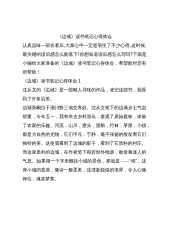 《边城》读书笔记心得体会认真品味一部名著后,大家心中一定是萌生了不少心得,这时候,最关键的读后感怎么能落下!你想知道读后感怎么写吗?下面是小编给大家准备的《边城》读书笔记心得体会,希望能对您有所帮助!《边城》读书笔记心得体会1沈从文的《边城》是一部耐人寻味的作品,读完这部书,我受到了许多启发。边城茶峒位于湘川黔三省交界处。沈从文笔下的边城乡土气息很重,今年五一,我有幸去乡村游玩,参观了原始森林,体验了农家的乐趣。河流,山川,渡头,渡船,竹林,茅屋,小镇,都是大自然的尤物,它们平凡,宁静,毫不张扬的散发着它们独特的美。这使我看到了边城的影子,看到了它质朴的村庄。而这座质朴的边城,在作者笔下宛若世...