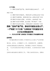 六个方面:(一)围绕"坚持严查严惩,推动作风建设全面从严、一严到底"方面(二)围绕"刹住吃喝歪风,营造风清气正的政治生态"方面(三)围绕"风腐同查,持续加固中央八项规定堤坝"方面(四)围绕"形成强大震慑,正风肃纪、激浊扬清"方面(五)围绕"发扬斗争精神,真正做到‘两个维护”"方面(六)围绕"扛起政治责任,对得起党和人民的重托"方面围绕“坚持严查严惩,推动作风建设全面从严、一严到底"六个方面“以案促改"作风建设专项大讨论对照检查材料一、充分认识开展"以案促改"作风建设工作的重要性和紧迫性情况党风廉政建设和反腐败工作是国有企业全面从严治党的重要内容。近年来,公司围绕中心工作,坚持惩防并举、注重预防...