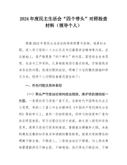 【33篇班子】2024年度民主生活会、组织生活会班子对照检查材料四个带头专题方面检视剖析自查查摆含上年度整改案例剖析发言提纲机关党支部党委范文汇编20250228