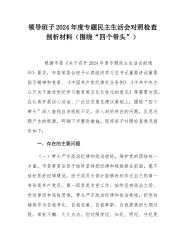 2024年度组织生活会个人对照检查材料根据《关于做好2024年度组织生活会有关工作的通知》要求,我深入学习贯彻习近平新时代中国特色社会主义思想,认真领悟习近平总书记关于党的建设的重要思想,仔细学习了《党章》《关于新形势下党内政治生活的若干准则》《中国共产党党内监督条例》《中国共产党纪律处分条例》和上级关于组织生活会的有关要求。通过学习,我个人的思想认识进一步提高,政治觉悟、党性修养进一步提升。随后,我紧紧围绕“四个带头”,坚持“三个摆进去”,通过与所在党支部部分党员开展谈心谈话,进行党性分析,深刻检视反思,剖析问题产生的原因,明确了整改措施和努力方向。现将对照检查情况汇报如下:一、存在问题及具...
