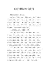 在X县安全生产、防汛减灾工作暨落实“沟长+点长”责任制培训视频会议上的主持讲话同志们: 正值“七下八上”防汛关键期,汛期暑期综合风险交织的特殊期,全国、全省、全州陆续发生自然灾害和安全生产事故的敏感期。今天,我们召开X县安全生产、防汛减灾工作会暨“沟长+点长”责任制落实培训,主要有几个目的:一是为了更加务实贯彻落实党的二十届三中全会、7月25日中共中央政治局会议和习近平总书记关于防汛抗洪救灾重要讲话和指示精神;二是为了更加贯彻落实省委省政府、州委州政府关于防汛减灾、安全生产系列安排部署以及省州各级领导系列指示批示、调度督促、一线指挥指示要求;三是为了第一时间传达和贯彻落实好沈阳书记在昨天全州...