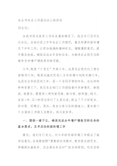 在全市防汛抗旱工作电视电话会议上的讲话商丘市市长张建慧(2020年5月10日,根据录音整理)同志们:刚才,我们一起收听收看了全省防汛抗旱工作电视电话会议,我们接着召开全市防汛抗旱工作电视电话会议,主要任务是贯彻落实省电视电话会议精神,安排部署我市防汛抗旱工作。下面,我再讲以下三点意见。一、履职尽责,确保安全一是要始终坚持把人民的生命财产安全放在第一位工作理念,切实履职尽责。当前,新冠肺炎疫情尚未完全结束,我们已经进入了汛期。大疫之年常有大灾。在疫情防控常态化条件下,在气候出现异常和极端天气较多的情况下,做好防汛抗旱工作、确保防汛抗旱安全,对于保障人民生命财产安全、促进经济社会发展具有重大意义。...