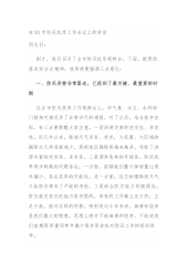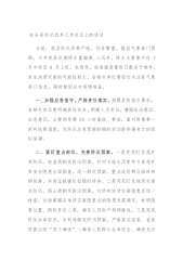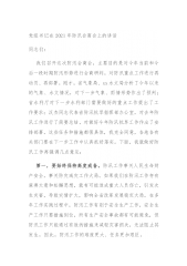 在全县防汛抗旱工作会议上的讲话当前,我县防汛形势严峻,任务繁重。据县气象部门预测,今年我县汛期降水量偏高,入汛早,降水主要集中在7月中旬至8月上旬,来雨急,较高强度暴雨日数多于常年,发生洪涝灾害的可能性较大。各相关单位要密切关注县气象部门信息,随时做好应对雨情准备。一、加强应急值守,严格责任落实。按照县防指办要求,各相关单位要明确具体任务,明晰人员责任,增强政治意识、应急意识,主要领导要24小时值班、带班,面对雨情第一时间统筹调度,为防汛应急预案的随时启动提供强有力的组织保障。二、紧盯重点部位,完善防汛预案。一是死死盯住尾矿库防汛。安监局制定防汛预案,针对X座头顶库和X座尾矿库安全隐患全面排查...