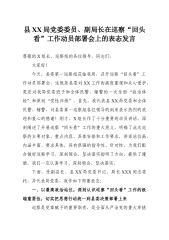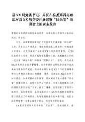 县XX局党委书记、局长在县委第四巡察组对县XX局党委开展巡察“回头看”动员会上的表态发言尊敬的县委第四巡察组各位领导,县委巡察工作领导小组各位同志,同志们:今天,县委第四巡察组正式进驻我局开展巡察“回头看”工作,并专门召开动员会,详细部署巡察工作安排,明确巡察工作要求,这充分体现了县委对XX工作的高度重视、对XX队伍的关心关怀,更是对我局党委履职尽责、巡察整改工作的一次全面“政治体检”和精准“把脉问诊”。首先,我代表县XX局党委及全体民警辅警,向县委第四巡察组各位领导的到来表示最热烈的欢迎!向县委长期以来对XX工作的坚强领导和大力支持表示最衷心的感谢!刚才,巡察组长XX同志作了站位高远、内涵深刻的动员讲话,深刻阐述了此次巡察“回头看”的重大意义、目标任务和工作要求,为我们做好配合工作、抓好整...