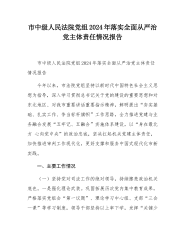 市中级人民法院党组2024年落实全面从严治党主体责任情况报告