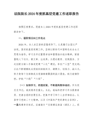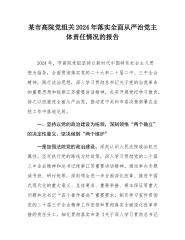 市中级人民法院党组2024年落实全面从严治党主体责任情况报告市中级人民法院党组2024年落实全面从严治党主体责任情况报告今年以来,市法院党组坚持以新时代中国特色社会主义思想为指导,深入学习贯彻总书记关于党的建设的重要思想和对东北地区、对我市重要讲话重要指示精神,鲜明提出“夯实基础、扎实工作、争当标杆旗帜”工作思路,全力推进党建与业务融合发展“五牢记、五融合”实施体系建设,以“身在最北方心向党中央”的政治忠诚,坚决扛起机关党建主体责任,加快推进审判工作现代化,更好支撑和服务中国式现代化市新实践。一、主要工作情况(一)坚持党对司法工作的绝对领导,持续擦亮政治机关底色。一是强化理论武装。巩固拓展历次...