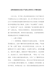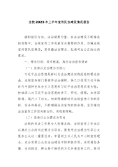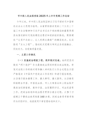 市中级人民法院党组上半年落实全面从严治党主体责任工作情况报告今年以来,市中级人民法院党组坚持以习近平新时代中国特色社会主义思想为指导,深入学习贯彻习近平总书记关于党的建设的重要思想特别是对机关党建工作的重要讲话和重要指示批示精神,坚持以“政治建院”为统领,以“党建引领”为先导,紧紧围绕“抓党建带队建促审判”主题主线,不断压实党建责任、积极创新党建机制、着力培树党建品牌,持续夯实基层基础,以高质量党建引领助推法院各项工作健康有序发展。一、主要工作情况(一)培根铸魂,铸就绝对忠诚政治品格。一是淬炼思想强信念。坚持不懈用党的创新理论凝心铸魂,严格落实“第一议题”制度,深化领学促学机制,去年以来,党组理论学习中心组学习34次、交流研讨17次,讲党课28次,党纪学习26次,提高党员干警政治判断力、政治...