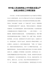 市中级人民法院党组上半年落实全面从严治党主体责任工作情况报告