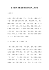 在2026年市委党建引领基层高效能治理暨全市组织工作会议上的讲话同志们:今天,我们召开市委党建引领基层高效能治理暨全市组织工作会议,主要任务是深入学习贯彻习近平新时代中国特色社会主义思想,全面落实中央和省委关于加强基层治理和组织工作的部署要求,总结成绩、分析形势,对当前和今后一个时期全市党建引领基层治理和组织工作进行系统部署,动员全市各级党组织和广大党员干部凝心聚力、真抓实干,以高质量党建引领高效能治理,为推进现代化建设提供坚强组织保障。一、提高政治站位,深刻把握党建引领基层高效能治理的重大意义基层治理是国家治理的基石,是实现国家治理体系和治理能力现代化的基础工程。党的执政根基在基层,国家治理的神经末梢在基层,必须把抓基层打基础作为长远之计和固本之策。当前,*正处于转型发展的关键时期,面对新...