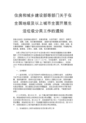 住房和城乡建设部等部门关于在全国地级及以上城市全面开展生活垃圾分类工作的通知