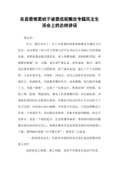 在2025年县委常委班子巡视整改暨“以案三促”专题民主生活会上的总结讲话同志们:今天,我们召开了一次十分重要的专题民主生活会。会议紧扣省委巡视整改和“以案三促”主题,各位常委同志以对党、对事业、对同志、对自己高度负责的态度,深入查摆问题,深刻剖析根源,严肃认真地开展了批评和自我批评。省纪委监委、省委组织部、省委巡视机构的领导同志全程到会指导,提出了宝贵的指导意见,体现了省委对我们县工作的高度重视和对我们班子成员的关心爱护,我们一定要认真领会、坚决落实。刚才,我代表县委常委班子作了对照检查,各位同志也逐一进行了个人对照检查发言,并相互提出了批评意见。整个会议准备扎实充分,查摆问题深入具体,相互批评坦诚相见,整改方向清晰明确,达到了统一思想、深化认识、凝聚共识、增进团结的预期目的,是一次高质量、...