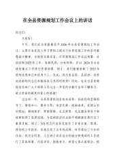 在全县资源规划工作会议上的讲话