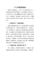 个人年度述职报告我现任*学校副校长。一年来,在上级领导的关心下,在校领导班子的领导和帮助下,在全体教职工的支持下,以“为每个孩子一生的幸福奠基”为核心理念,围绕学校中心工作,以求真务实、清正廉洁、埋头苦干的作风,认真履行职责,基本完成了各项工作任务。现将一年的工作总结如下:一、加强政治学习,增强品德修养我特别注重政治理论的学习,通过参加集中学习和自我学习相结合的方式,认真学习党的教育方针、《教育法》《中小学管理》等,把理论学习和实践相结合并贯穿到实践中,把立德树人作为教育的根本任务,明确自己的任务和目标,大是大非面前,立场坚定。按照“领导带头、当好表率,敢于担当、务求实效”的要求,在工作、学习...