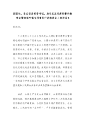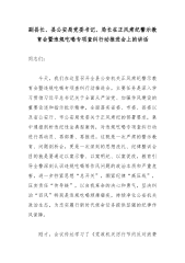 副县长、县公安局党委书记、局长在正风肃纪警示教育会暨违规吃喝专项查纠行动推进会上的讲话3同志们: 今天我们召开全县公安机关正风肃纪警示教育会暨违规吃喝专项查纠行动推进会,主要任务是深入学习贯彻习近平新时代中国特色社会主义思想和党的二十大精神,全面落实中央、省委、市委、县委关于全面从严治党、党风廉政建设和反腐败工作的决策部署,以及公安部、省公安厅、市公安局关于加强公安队伍建设的系列要求,传达学习相关重要文件精神,通报近年来全县乃至全省、全国公安机关违纪违法典型案例,深刻剖析问题根源,部署推进全县公安机关正风肃纪和违规吃喝专项查纠行动,进一步严明纪律规矩、筑牢思想防线、压实工作责任,着力打造一支忠诚干净担当的过硬公安铁军,为全县经济社会高质量发展和人民群众安居乐业提供坚强的公安保障。 当前,...