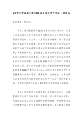 XX县公安局2026年党建工作要点2026年是中国共产党成立105周年,是"十五五"规划开局之年。全县公安机关党建工作总体思路是坚持以习近平新时代中国特色社会主义思想为指导,全面贯彻党的二十大和二十届历次全会精神,深入践行习近平总书记关于新时代公安工作的重要论述,牢牢把握"对党忠诚、服务人民、执法公正、纪律严明"总要求,聚焦"围绕中心、建设队伍、服务群众"核心任务,以政治建设为统领,以高质量党建引领公安工作高质量发展为主线,以落实党建主体责任为牵引,持续提升公安机关党的建设质量,为实现"十五五"良好开局、建设更高水平平安XX提供坚强政治保证。一、持续深化政治建警,铸牢对党忠诚的政治灵魂1.把党的政治建设摆在首位,深入学习贯彻党的二十届四中全会精神。持续抓好党的二十届四中全会精神、习近平总书记...