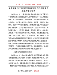 党风廉政建设责任制工作报告:关于落实2022年度党风廉政建设责任制情况专题工作情况报告