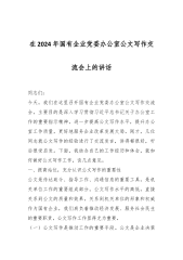 在2024年国有企业党委办公室公文写作交流会上的讲话
