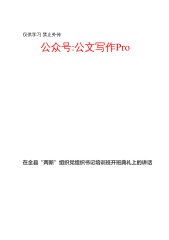 公文堂公文写作之家,体制人加油站目录一、党委1.各级党组织学习贯彻党的二十大精神工作总结12.江苏省学习宣传贯彻二十大精神工作总结73.安徽省直机关工委学习宣传贯彻二十大精神工作总结114.钦州市学习宣传贯彻二十大精神工作总结135.玉溪市学习宣传党的二十大精神工作总结176.天水市学习宣传贯彻二十大精神工作总结207.嘉峪关市学习宣传贯彻二十大精神工作总结228.无锡市学习宣传贯彻二十大精神工作总结249.定西市学习宣传贯彻二十大精神工作总结2610.张掖市学习宣传贯彻二十大精神工作总结2811.包头市学习宣传贯彻二十大精神工作总结3012.十堰市学习宣传贯彻二十大精神工作总结3413.巴音...