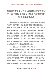 公文堂——公文写作之家、体制人加油站、材料每天更新学习宣传贯彻党的二十大精神研讨交流发言材料:深学细悟学用结合把二十大精神落实到XX高质量发展上来党的大会和一中全会选举产生了肩负历史使命、开创复兴伟业的中央领导集体,饱含着全国490多万个基层党组织、9600多万名党员的重托、14亿多人民的期待,反映了中央的要求、全党的意志、人民的意愿,我们坚决拥护、充分信赖、衷心爱戴、绝对忠诚。这几天,我认真聆听、反复阅读二十大报告,让人心明眼亮、信心倍增、豪情满怀。报告高屋建瓴、内涵丰富,思想深邃、催人奋进,通篇闪耀着马克思主义真理光芒,具有很强的思想性、战略性、前瞻性和指导性。下面,结合这几天的学习,浅谈...