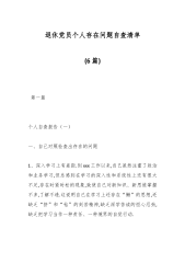 退休党员个人存在问题自查清单(6篇)第一篇个人自查报告(一)一、自己对照检查出存在的问题1、深入学习上有差距.到xxx工作以来,自己虽然注重了政治和业务学习,但总感到在学习的深入性和系统性上还有很大不足,存在时紧时松的现象,致使自己对新知识、新思维掌握不多,了解不透.这说明自己在学习上还存在“懒”的思想,还缺乏“挤”和“钻”的刻苦精神,缺乏深学苦读的恒心忍劲,缺乏把学习当作一种责任、一种境界的自觉行动.2、工作作风上有差距.一是认为自己是工作多年了,有时产生松口气、想歇歇的念头,致使工作有时不够主动,满足于完成领导交办的任务,满足于面上不出问题,创新意识淡化,忽视了工作的积极性、主动性、创造性...