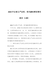 (3篇)2024年全面从严治党、党风廉政建设情况报告