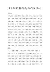 在XX区生态环境保护工作会议上的讲话(精品)同志们:今天,我们在这里召开全区生态环境保护工作会议,主要任务是深入分析当前我区生态文明建设面临的新形势、新挑战,全面部署下一阶段的重点工作,动员全区上下进一步统一思想、坚定信心、压实责任,以决战决胜的姿态,坚决打好污染防治攻坚战,持续推动区域生态环境质量实现根本性好转。两天前,区政府专门召开了工作调度会,对突出问题进行了系统梳理,今天这次会议,既是一次再动员、再部署,更是一次责任上肩、任务到人的誓师会。生态环境是关系我区长远发展的根本大计,抓好生态环境保护,是推动区域高质量发展的内在要求,也是对全区人民福祉最直接的责任担当。全区各级各部门必须站在政治和全局的高度,深刻认识这项工作的极端重要性,以最坚决的态度、最务实的举措,全力以赴抓好落实。一、正...