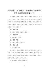 ·1关于开展“学习强国”先进集体、先进个人评选活动的实施方案(1)为持续加大“学习强国”学习平台推广使用力度,引导全区广大党员、干部、群众用好、学好、坚持好,大力营造崇尚学习、加强学习的浓厚氛围。经研究,从7月份开始,在全区范围内广泛开展“学习强国”先进集体、先进个人评选活动。制定方案如下:一、活动主题梦想从学习开始事业从实践起步二、活动时间从2019年7月开始三、主办单位区党群工作部、区总工会四、活动内容1、广泛宣传发动。各党委、各党支部要采取多种形式,积极动员全区广大党员、干部、群众踊跃下载安装“学习强国”学习平台,利用平台开展不同形式的学习教育活动,并在此基础上组织开展先进集体、先进个人...