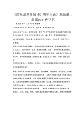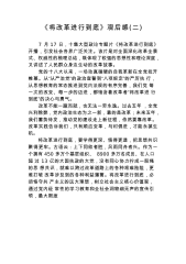 《将改革进行到底》观后感:观《将改革进行到底》——时代之问有感大型政论专题片《将改革进行到底》第一集《时代之问》于2017年7月17日晚八点在央视首播。第一集是整部专题片的开端,有大量体现习近平总书记思考改革、部署改革、亲力亲为推动改革的珍贵画面,有全面深化改革决策亲历者的生动讲述,更有一幕幕体现祖国发展进步、振奋人心的场景,再现了全面深化改革的轨迹。看完第一集,我最深的感触就是震撼,仿佛是在翻读中华民族厚重的历史,而她的每一页,都是在求索与抗争、奋斗与崛起的交织辉映中坚韧前行,磅礴不息,有着升腾不屈的气势;该片也充分展现出以习近平总书记为核心的党中央将改革进行到底的决心和魄力。该片从国内和国...