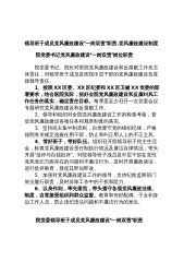 领导班子成员党风廉政建设“一岗双责”职责.党风廉政建设制度院党委书记党风廉政建设“一岗双责”岗位职责 院党委书记、院长对医院党风廉政建设和反腐败工作负主体责任,对领导班子成员及医院中层干部的党风廉政建设负直接领导责任。1、按照XX区委、XX区纪委和XX区卫健XX党委的部署要求,结合医院实际,抓好全院党风廉政建设和反腐纠风工作任务的落实,确定责任目标。每季度至少召开一次党委会议专题研究党风廉政建设和反腐败工作。2、领导和组织对全院党风廉政建设工作的检查考,督促党风廉政建设各项任务和规章制度的落实。3、坚持民主集中制原则,自觉遵守党的组织纪律,严格按照有关规定选拔任用干部,防止和纠正用人上的不正之...
