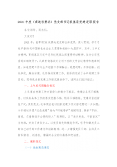 2021年度(高速收费站)党支部书记抓基层党建述职报告各位领导,同志们:大家好!2021年,我带领XX收费站党支部全体党员,深入贯彻、学习习近平新时代中国特色社会主义思想和党的十九届四中、五中、X中X会精神,贯彻落实习近平总书记视察山西重要讲话精神,在分公司党委的正确领导下,认真贯彻落实分公司下发的文件会议精神和规章制度。加速党建工作与生产经营工作相融合,锐意进取,开拓创新,创先争优,廉洁自律,扎实推进党建工作,较好的完成了全年党建工作目标。现将我支部党建工作情况报告如下,请同志们批评指正:一、上年度问题整改情况上年度在党建工作方面投入的精力不够多,党建业务还不够熟悉,对有些具体工作的要求把握...