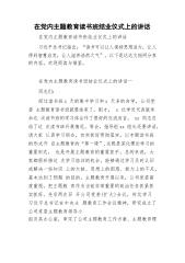 在党内主题教育读书班结业仪式上的讲话在党内主题教育读书班结业仪式上的讲话习近平总书记指出:“读书可以让人保持思想活力,让人得到智慧启发,让人滋养浩然之气”。以下是达达文档网分享的内容,欢迎阅读与借鉴。在党内主题教育读书班结业仪式上的讲话一同志们:经过读书班x天的集中学习和x天多的自学,公司党委主题教育读书班就要结束了。刚才,x位学员代表就参加这次读书班的学习体会作了很好的交流发言,xx同志总结了这次读书班开展情况。等会,指导组xx组长还要讲话,请大家认真学习领会,切实抓好贯彻落实。以专题读书班的形式开启主题教育的“第一课”,这既是深化理论学习的重要形式,也是开展主题教育的重要抓手。总的来说,大...