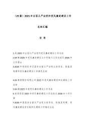 (29篇)2025年全面从严治党和党风廉政建设工作总结汇编目录1.局2025年全面从严治党和党风廉政建设工作总结2.XX镇2025年党风廉政建设与乡村振兴工作总结及2026年工作要点3.2025年党组织书记落实全面从严治党主体责任、抓基层党建和党风廉政建设工作情况总结4.XX集团股份有限公司2025年党风廉政建设和反腐败工作总结5.XX镇2025年度党风廉政建设工作总结6.某局党组2025年党风廉政建设工作总结及2026年工作打算7.2025年度落实全面从严治党主体责任、抓基层党建、党风廉政建设责任制和反腐败工作情况总结8.公司2025年党风廉政建设和反腐败工作总结9.公司2025年度党风廉政建设和反腐败工作总结报告10.国企纪委2025年党风廉政建设和反腐败工作总结11.集团2025年党风...