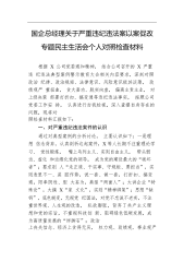 国企总经理关于严重违纪违法案以案促改专题民主生活会个人对照检查材料根据X公司党委通知精神,结合公司召开的X严重违纪违法典型案例警示教育大会相关内容要求,深刻对照政治纪律、政治规矩、法律意识、风险意识极其淡薄,政绩观严重扭曲,贪大喜功、脱实向虚,偏离主责主业,对上级决策部署打折扣、搞变通等违纪违法事实,按照公司党委工作安排,认真进行自我检视,深入查摆自身存在的问题,现将对照检查材料汇报如下:一、对严重违纪违法案件的认识通过对典型案例的分析讨论,主要认识如下:一是理想信念背弃。认真剖析这起案件,X等人长期不注重理论学习、党性锻炼,嘴上马列主义、实则自由主义,带头弱边、虚化和边缘化党的领导,成为党的...