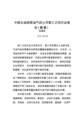中国石油西南油气田公司第三次党代会报告(摘要)(20210908)