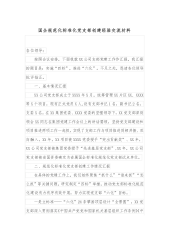 国企规范化标准化党支部创建交流材料:实施“四标”推进“六化”各位领导:按照会议安排,下面我就XX公司支部党建工作作汇报,我汇报的题目是:实施“四标”,推进“六化”。不足之处,恳请各位领导批评指正。一、基本情况汇报XX公司党支部成立于XXXX年X月,统筹管理XX片区XX、XXXX等X个项目。现有正式党员X人,设有支部书记1名,副书记2名,支委X名。在XX集团党委、XXXX党委的坚强领导下,XX党支部深刻领会XX同志在集团党建工作会议上的讲话要领,坚持党支部建设和项目推进两项工作一起抓,实现了支部工作与项目推进同频共振、双向融入。XX年,XX项目被XXXX党委授予“突出贡献奖”、XX年,XX公司党...