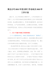 国企公司2021年党支部工作总结及2022年工作计划