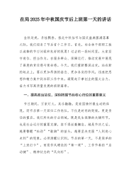 关于2025年国庆、中秋期间严防“四风”问题自查自纠情况报告根据上级关于节日期间紧盯“四风”问题、加强作风建设的要求部署,我局紧密结合2025年国庆节、中秋节假期工作实际,围绕严防“四风”问题隐形变异、反弹回潮的目标,认真组织开展了自查自纠工作。重点聚焦节前教育提醒的针对性实效性、节日期间监督检查的深度广度、违规问题处置的及时性严谨性,以及长效机制建设的系统性前瞻性等方面,深入排查薄弱环节,严肃纠治潜在风险。现将自查情况报告如下:一、紧盯思想源头,筑牢廉洁防线:节前警示教育和纪律要求落实情况(一)强化教育引导,提升思想自觉在当今复杂多变的社会环境下,思想防线是抵御“四风”问题的第一道关卡。局党组以高度的政治责任感和敏锐性,深刻认识到节前警示教育的重要性。1.宣传教育全覆盖:节前专门召开的党风...