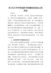 在纪检监察系统2024年中秋国庆节前警示教育大会上的讲话同志们:今天我们在这里召开全市纪检监察系统2024年中秋、国庆节前警示教育大会,主要是深入贯彻落实中央纪委和省纪委监委关于做好中秋、国庆期间党风廉政建设和反腐败工作的部署要求,深化以案促改警示教育,严明纪律规矩,教育引导全市纪检监察干部知敬畏、存戒惧、守底线持续推进清廉X建设。刚才通报了近期查处的违反中央八项规定精神典型问题和我市纪检监察系统查处的典型案件希望大家引以为戒、警钟长鸣。下面,我讲三点意见:一、坚定理想信念,不断筑牢拒腐防变的思想根基理想信念是共产党人的精神支柱和政治灵魂,是党员干部安身立命的根本。纪检监察机关作为党的“纪律部...