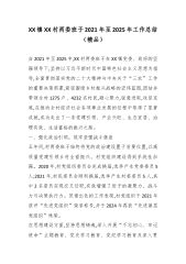 XX镇XX村两委班子2021年至2025年工作总结(精品)自2021年至2025年,XX村两委班子在XX镇党委、政府的坚强领导下,坚持以习近平新时代中国特色社会主义思想为指导,全面贯彻落实党的二十大精神与中央关于“三农”工作的重要决策部署,紧密围绕乡村振兴战略的宏伟蓝图,团结并带领全村1275户、4232名村民,凝心聚力,锐意进取,攻坚克难,在推动全村经济社会各项事业发展的征程中取得了显著成就,成功走出了一条党建引领、产业兴旺、生态宜居、治理有效、生活富裕的振兴之路。一、强化政治引领,筑牢坚强战斗堡垒五年间,村两委班子始终将党的政治建设置于首要位置,以高质量党建引领乡村全面振兴。村党组织建设得到系统性加强。2020年,村党组织委员会完成换届,选举产生党委委员5人;2021年,村民委员会顺利换...