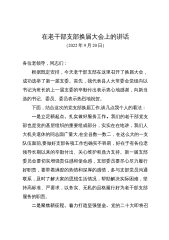 在老干部支部换届大会上的讲话(2022年9月20日)各位老领导,同志们:根据既定安排,今天老干部支部在这里召开了换届大会,成功选举了新一届支委。首先,我代表县人大常委会党组向以书记为班长的上一届支委的辛勤付出表示衷心地感谢,向新当选的书记、委员、委员表示热烈地祝贺。下面,结合这次的党支部换届工作,谈几点我个人的看法:一是立足新起点,扎实做好服务工作。我们的老干部党支部也是党的基层组织的重要组成部分,实实在在地讲,我们人大机关退休的同志面广量大,在全县数一数二,在这么大的一支队伍面前,要做好支部各项工作也确实不容易,好在于有各位老领导长期以来的辛勤付出、关心维护和鼎力支持。新一届支部委员会要切实...