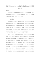 市委书记在2021年全市换届选举工作动员大会上的讲话发言材料同志们:今天这次会议,主要是对市总工会换届工作进行安排部署。刚才,同志就做好工会换届选举工作进行了部署安排,我完全同意,大家要认真抓好贯彻落实。下面,我讲三点意见。一、认识要高经市委和市总工会同意,我市拟于月召开全市工会第次代表大会,总结过去五年的工会工作,部署今后五年的工运蓝图,选举产生新一届工会领导班子。做好工会的换届选举工作,是全市劳动人民政治生活中的一件大事,也是一件振奋人心、鼓舞人心的好事,对于大力弘扬工人阶级伟大品格,唱响主旋律,凝聚正能量,团结全市广大职工群众践行新理念、建功“五”,具有十分重大的意义。去年,中央召开了党...