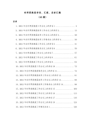 村两委换届讲话、汇报、总结汇编(46篇)目录1.2021年在村两委换届工作会议上的讲话1..................42.2021年在村两委换届选举工作会议上的讲话2..............133.2021年在村两委换届选举工作会议上的讲话3..............204.2021年在村两委换届选举工作推进会上的讲话4............305.2021年在村两委换届工作会议上的讲话5.................416.2021年在村两委换届推进会议上的讲话6.................507.2021年村两委换届工作会议上的讲话7..................