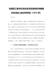 街道党工委书记在社区党支部党史专题组织生活会上的点评讲话(1615字)