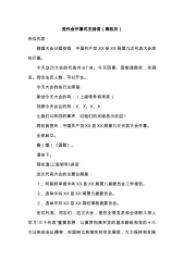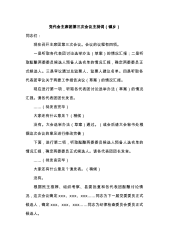 党代会主席团第三次会议主持词(镇乡)同志们:现在召开主席团第三次会议。会议的议程有四项。一是听取各代表团讨论选举办法(草案)的情况汇报;二是听取酝酿两委委员候选人预备人选名单的情况汇报,确定两委委员正式候选人。三是审议通过总监票人、监票人建议名单。四是听取各代表团审议关于两委工作报告决议(草案)的情况汇报。现在进行第一项,听取各代表团讨论选举办法(草案)的情况汇报。请各代表团团长发言。……(待发言完毕)大家还有什么意见?(稍候)没有。大会选举办法(草案)通过。(或会后请大会秘书处根据这次会议的意见进行修改完善)下面,进行第二项,听取酝酿两委委员候选人预备人选名单的情况汇报,确定两委委员正式候选...